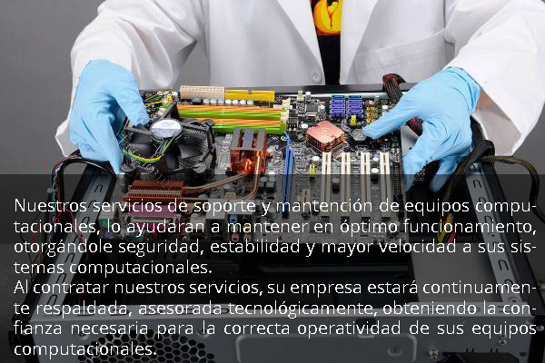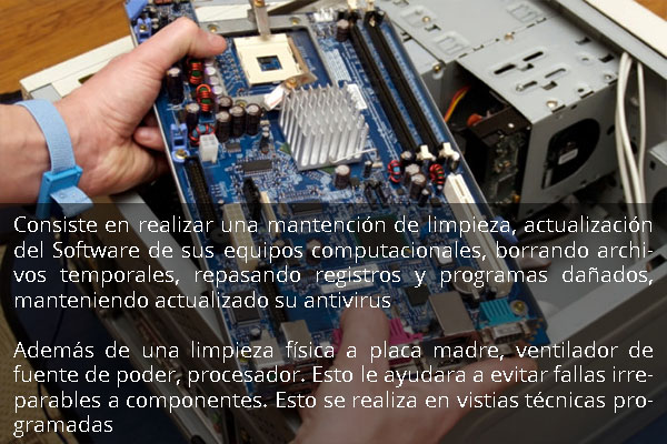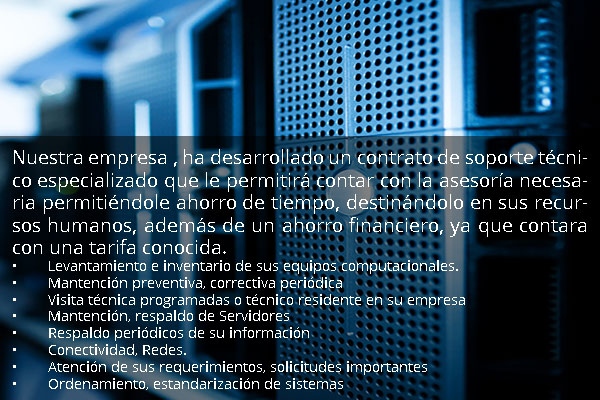 Servicios de mantenimiento preventivo y correctivo de equipos computacionales, servidores, equipos de red, contratos de soporte, etc.