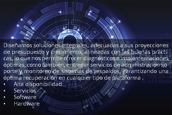Nuestra empresa se especializa en proveer servicios profesionales y soluciones tecnológicas para plataformas informáticas enfocando nuestro objetivo a entregar la mejor atención y dar soluciones tecnológicas que aporten valor para su organización. Brindamos soluciones y servicios de excelencia de alto valor añadido, mejoramos los procesos de nuestros clientes, resolvemos sus asuntos más críticos y aseguramos la continuidad operativa de sus negocios. En la actualidad contamos con presencia en las regiones Quinta, Sexta y Metropolitana.